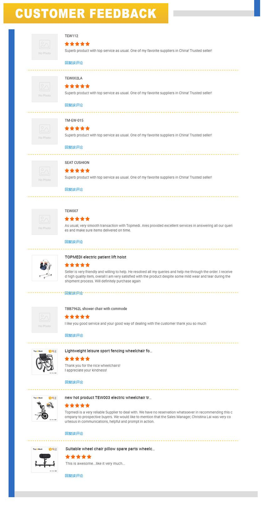С момента создания Topmedi наша компания стремится поставлять экономически эффективные медицинские продукты для старейшины и инвалидов. Наши основные продукты включают электрическую инвалидную коляску, ручную инвалидную коляску, кресло для душа, прогулочные средства и больничную койку.